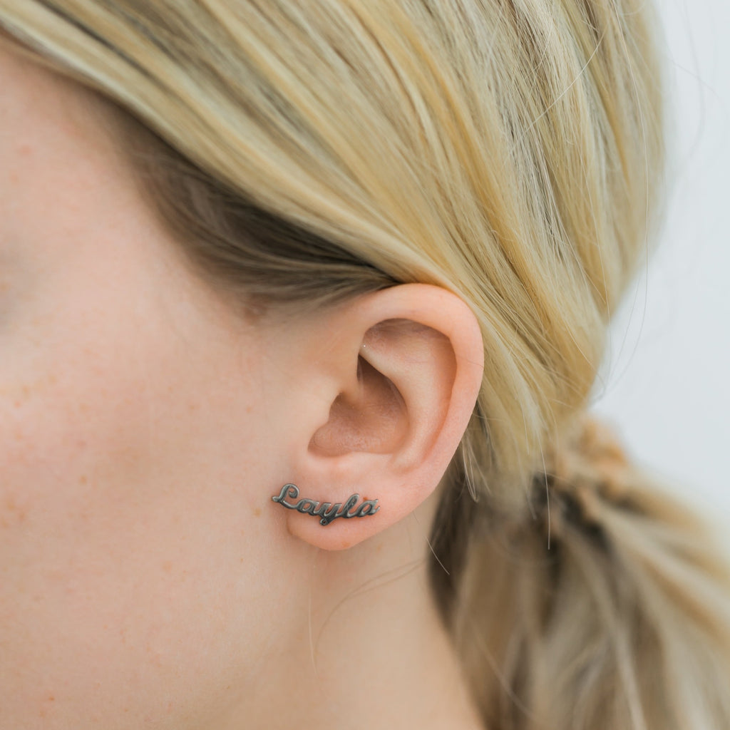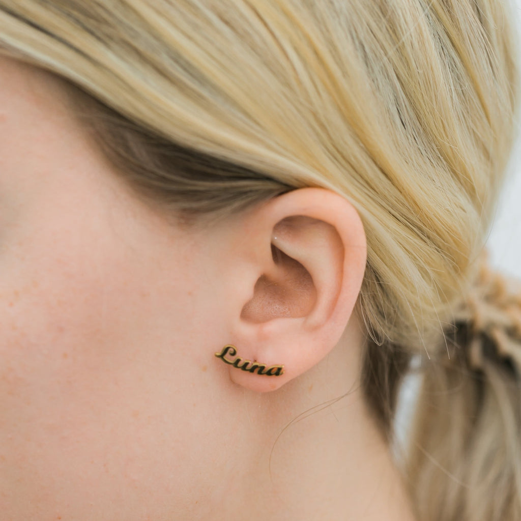 Design your own unique pair of earrings with your name or a loved one! Each earring is made by hand to perfection with the highest quality materials! These earrings are very fashionable and go with just about any outfit! Show them you care and get them a personalized gift worth Remembering.