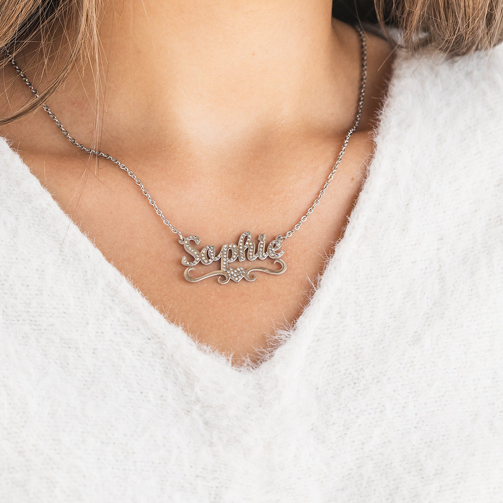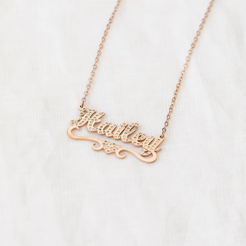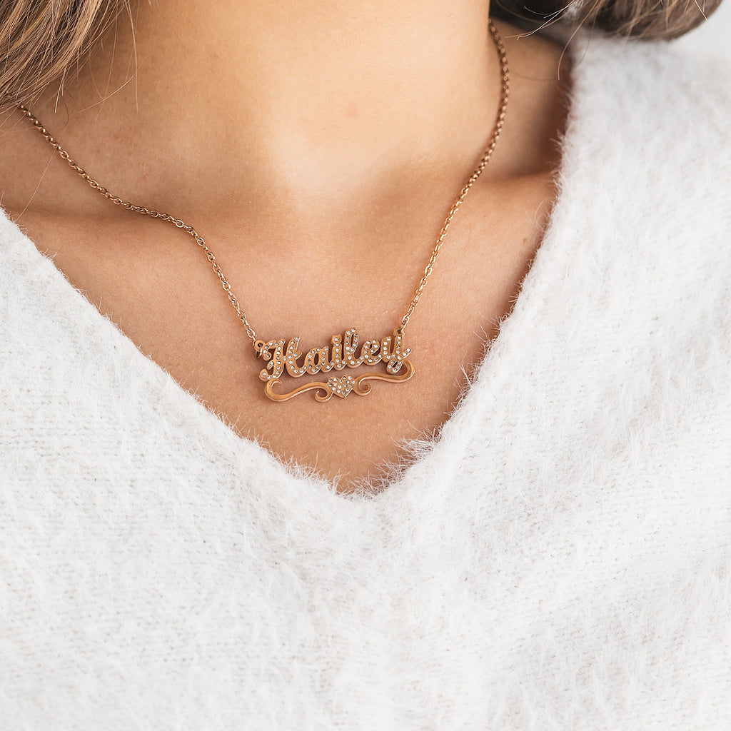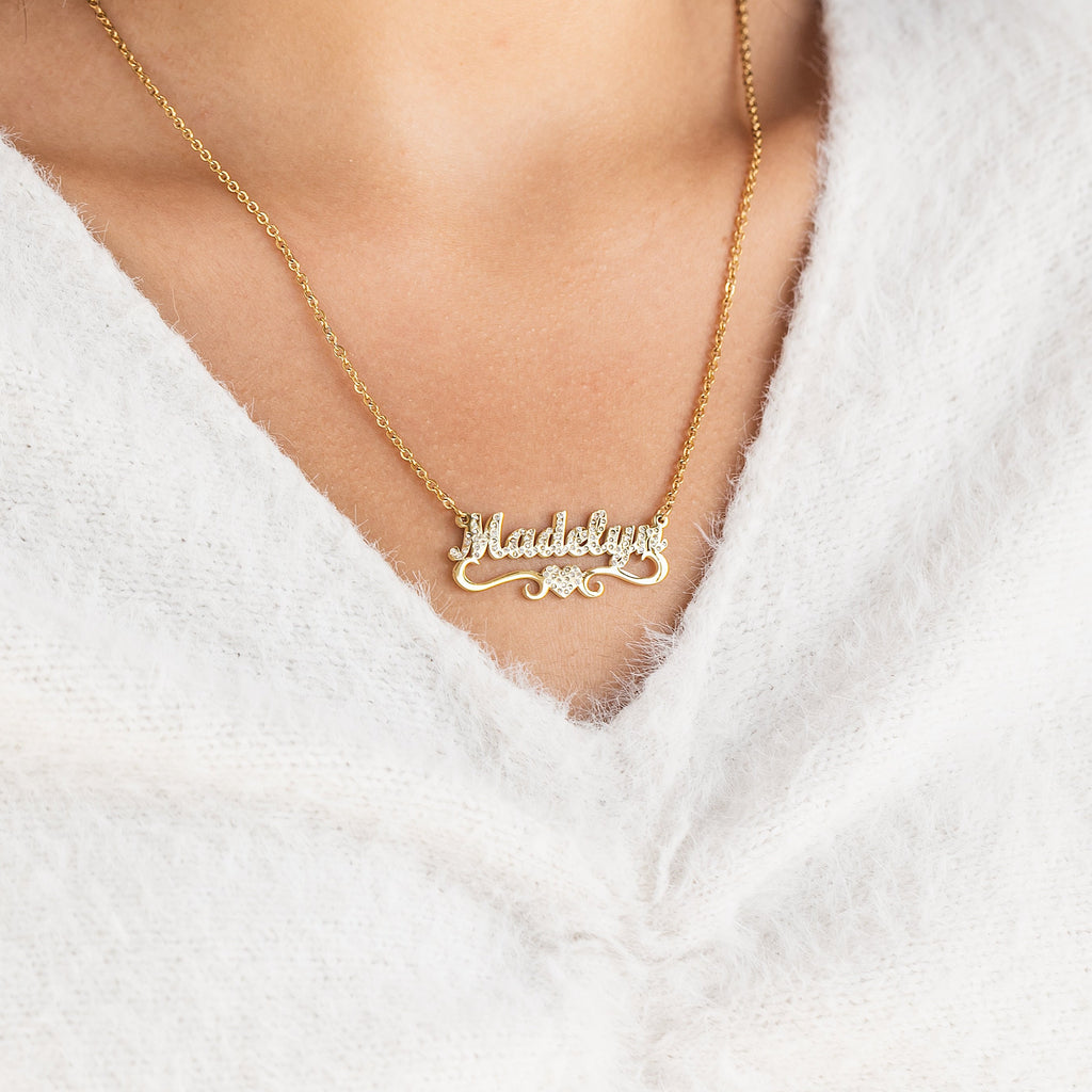 Custom Iced Heart Name Necklace in 18K Gold Plating
