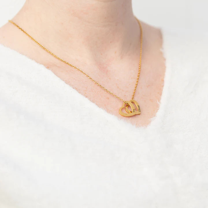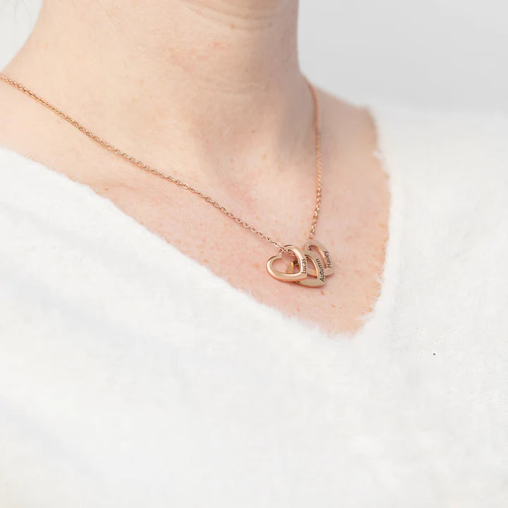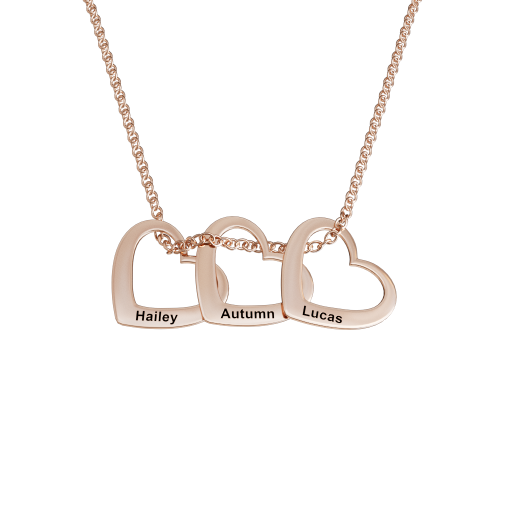Customize your name and many others in our personalized Heart Charm Name Necklace. This necklace offers an elegant and stylish look with the option to add up to seven hearts, all while being fully customizable. Give yourself or someone you care about a personal gift that they'll cherish forever. Each necklace is handmade to perfection!