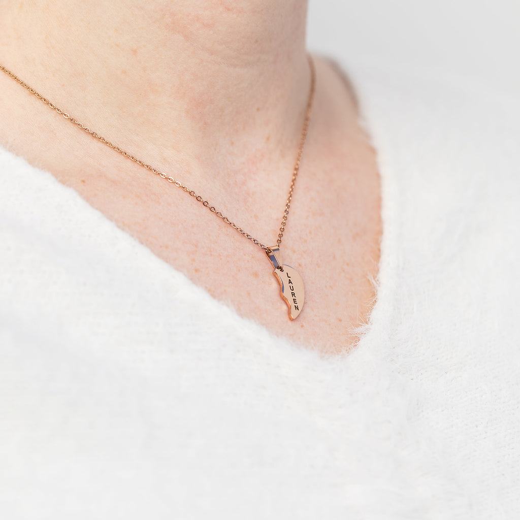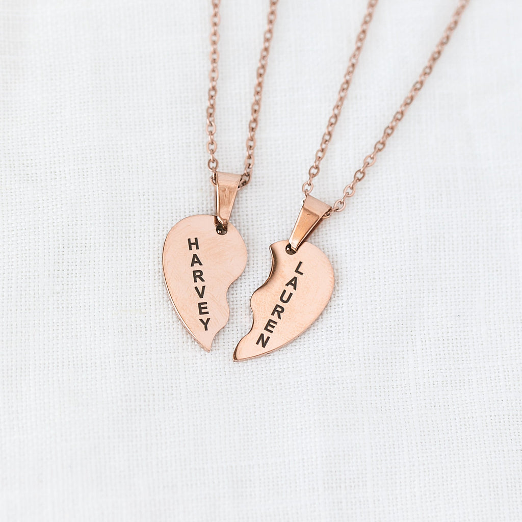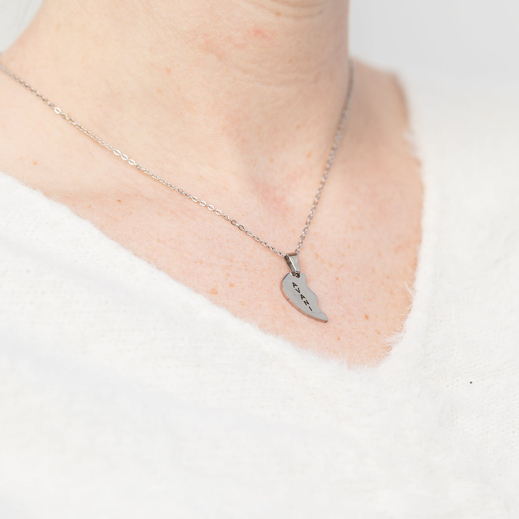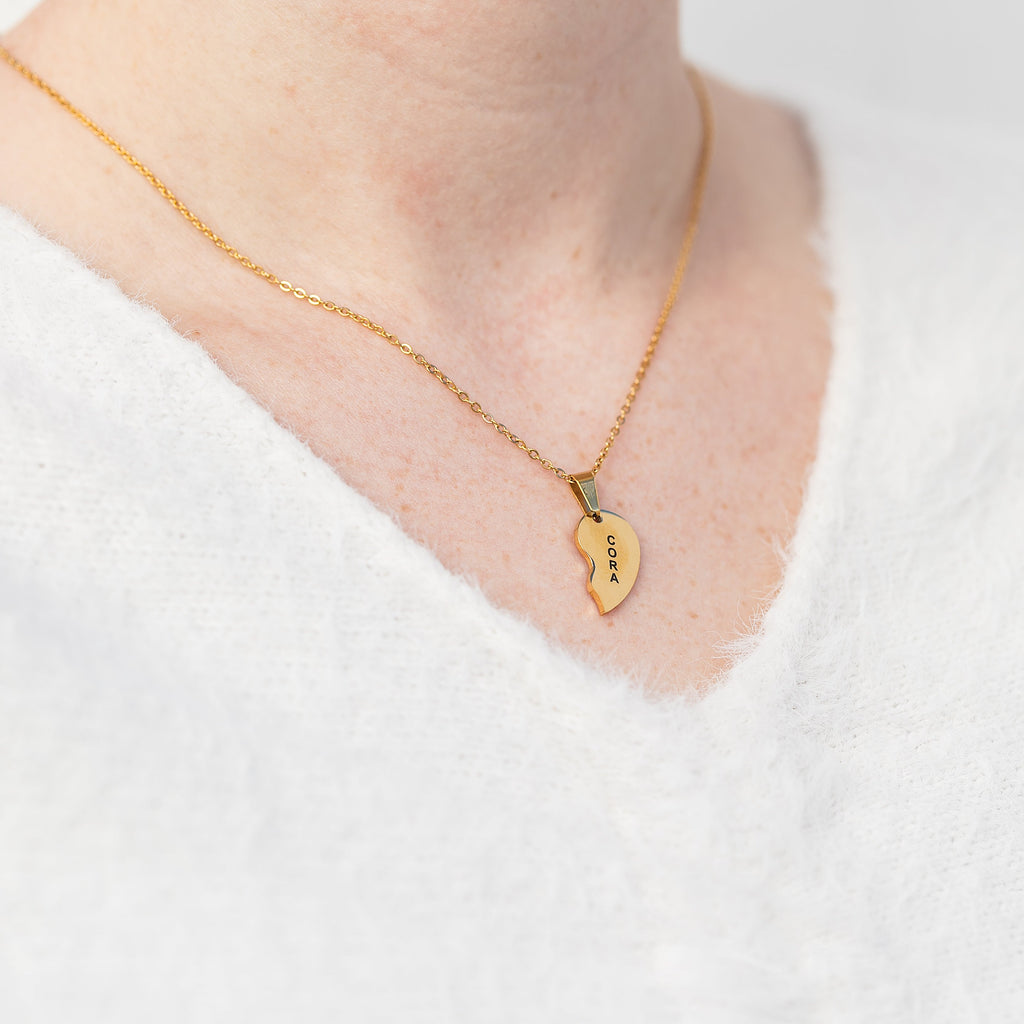 Customize your name and that special someone on our personalized Half Heart Couples Name Necklace. The classic movie-lover's necklace that will signify unity everywhere you both go, even when you're not together. Ordering one will get you two half hearts that you can uniquely customize. Each necklace is handmade to perfection!