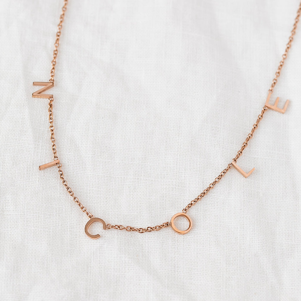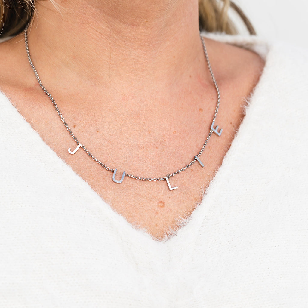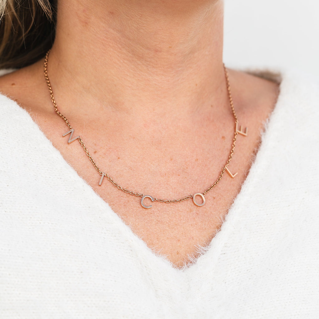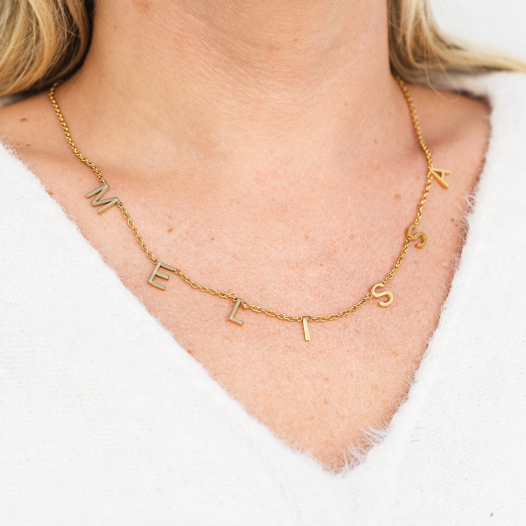 Mix and match different letters in our unique Letters Name Necklace, customizable with up to 7 letters. Give yourself or someone you care about a personal gift that they'll cherish forever. Each necklace is handmade to perfection!
