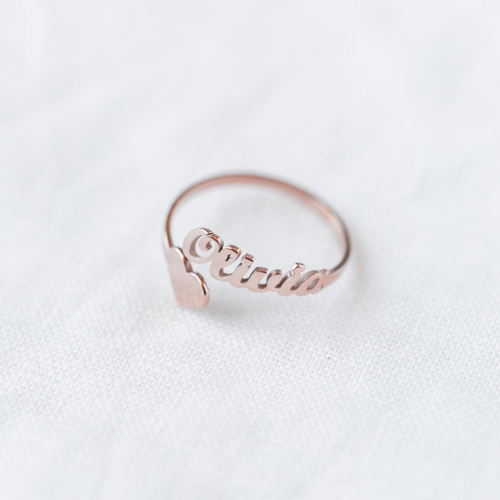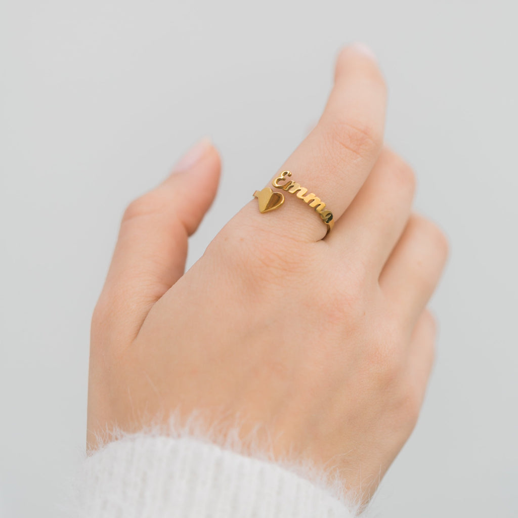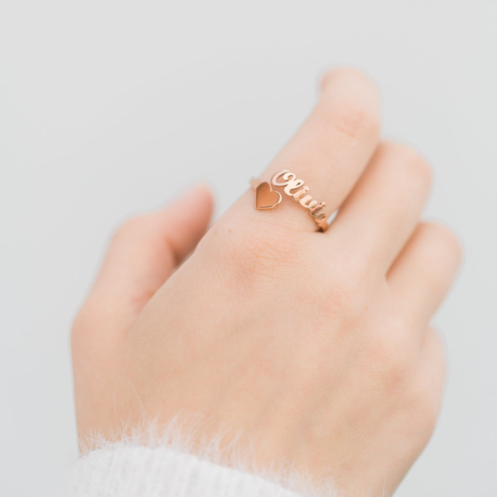 Personalize your own name ring! Our Heart Name Ring has been incredibly popular this season for its unique look, customization, and finishing polished shine! It goes with just about any outfit and is perfect for any occasion! Every ring is hand crafted to perfection! Get yourself or a loved one a gift worth Remembering.
