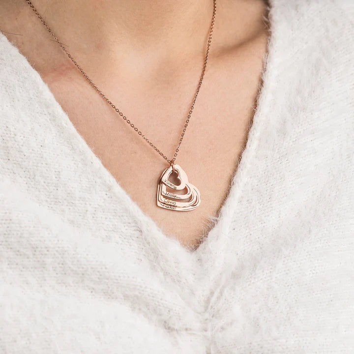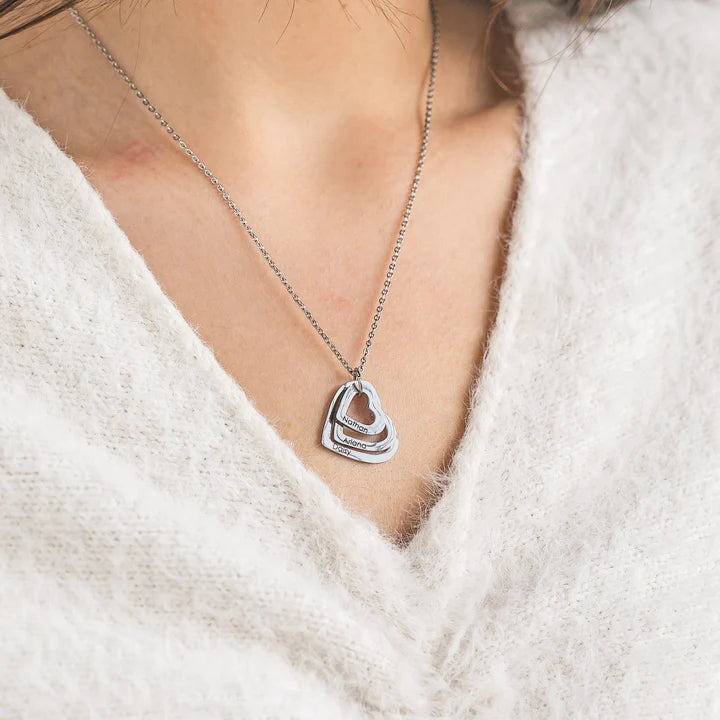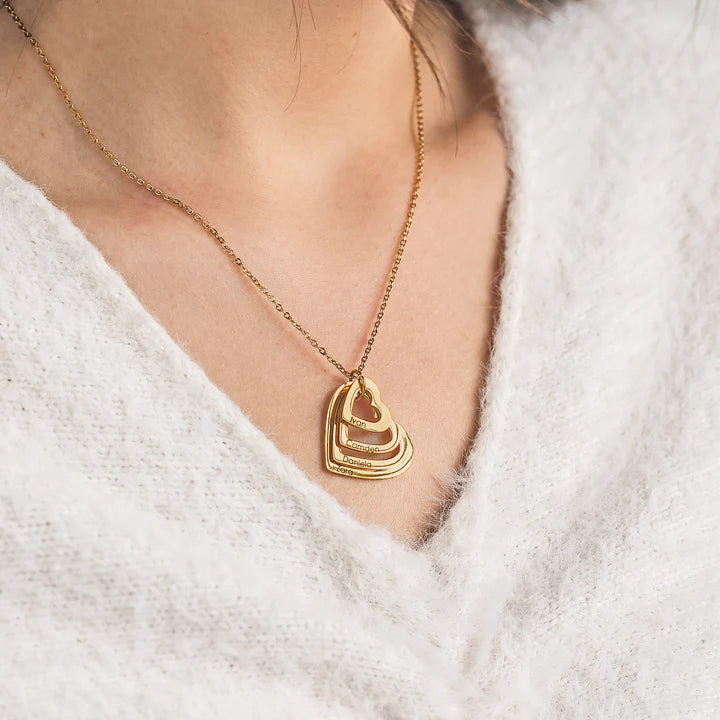 Stacked Hearts Name Necklace in 18K Gold Plating