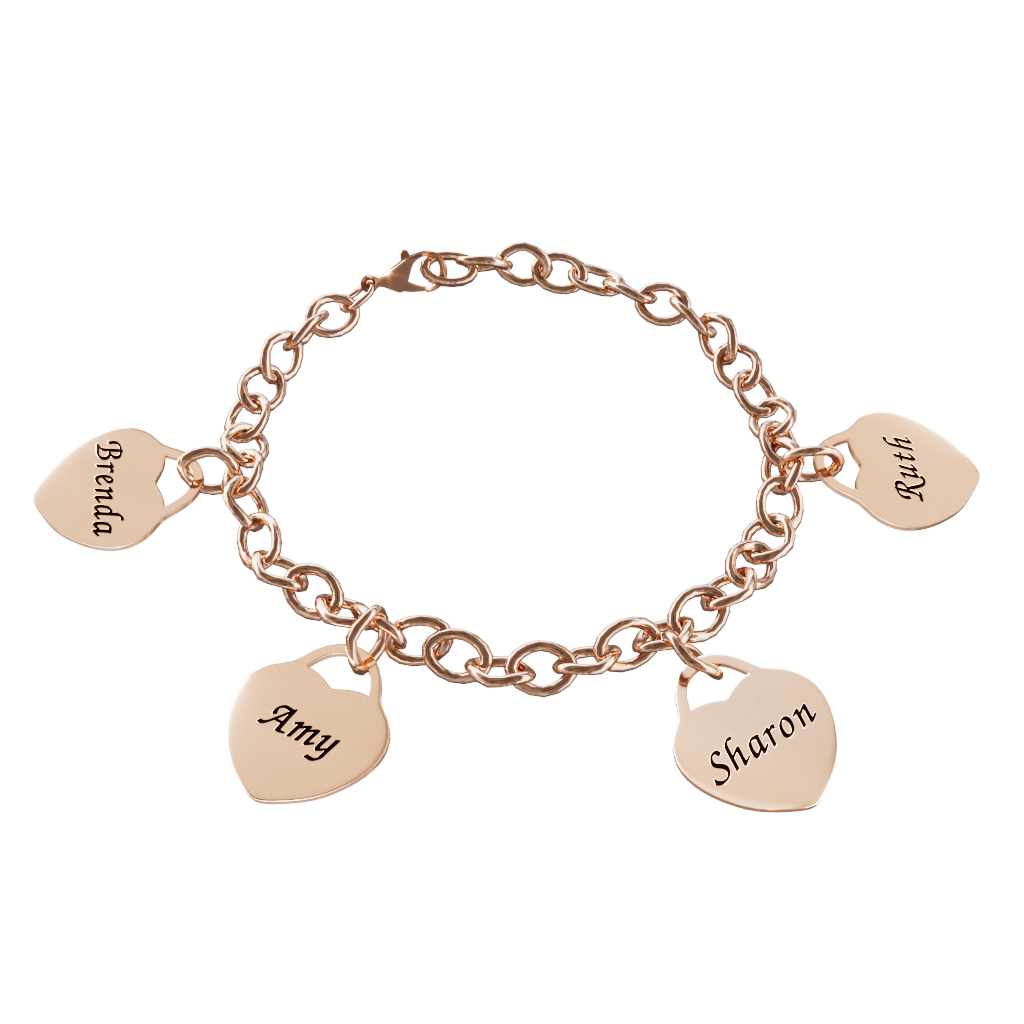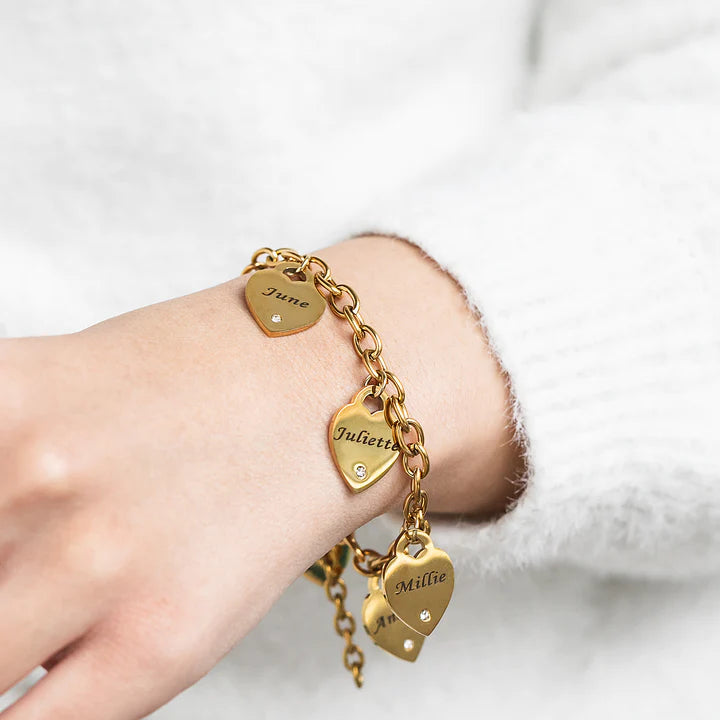 Link Bracelet with Heart Charms in 18K Gold Plating